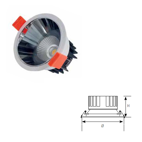1500 lm | 45° | Ø 111, H 68 | Recessed Dimmable/ Non-Dimmable | 220V |